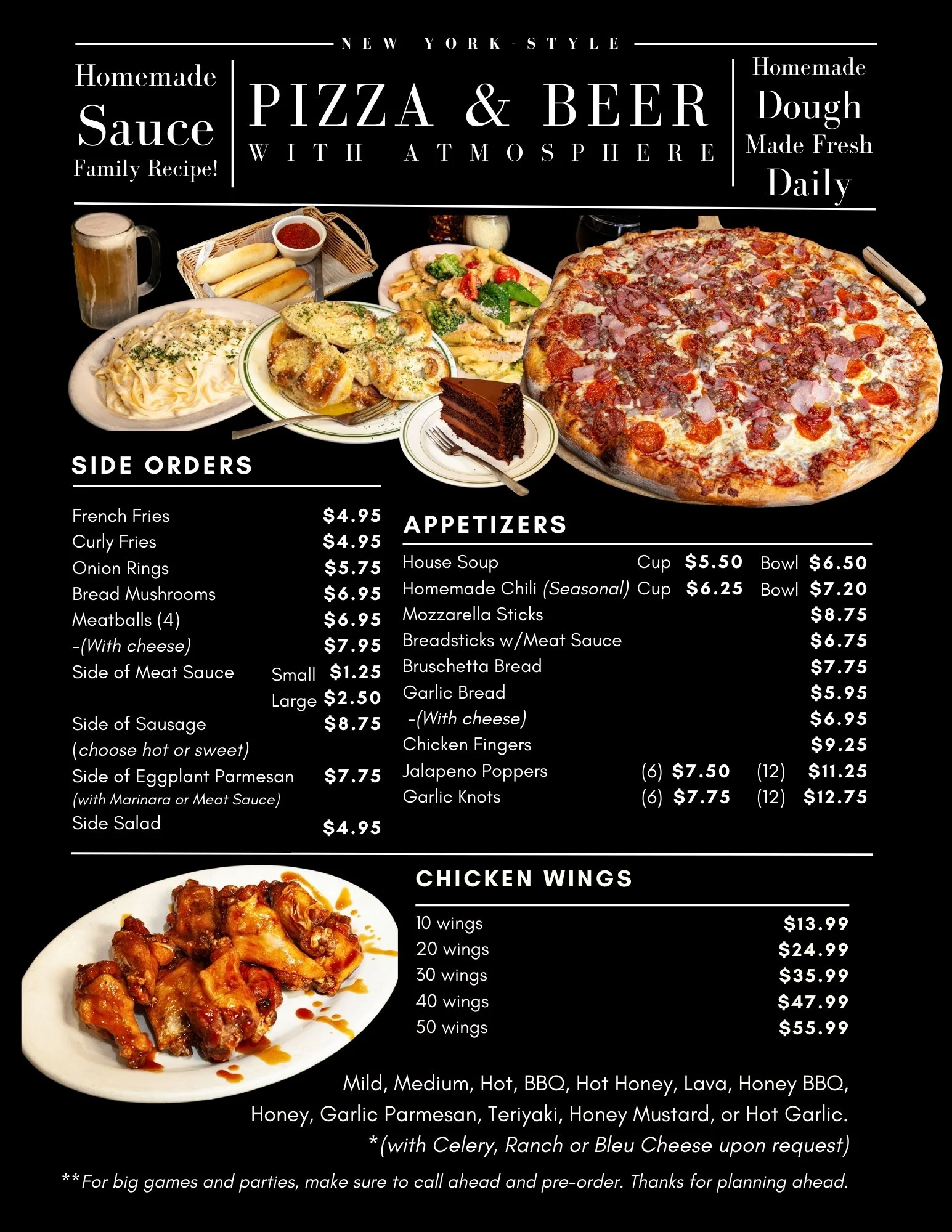 New York-style pizza. Baked pasta. Stacked subs & Hot Wings
